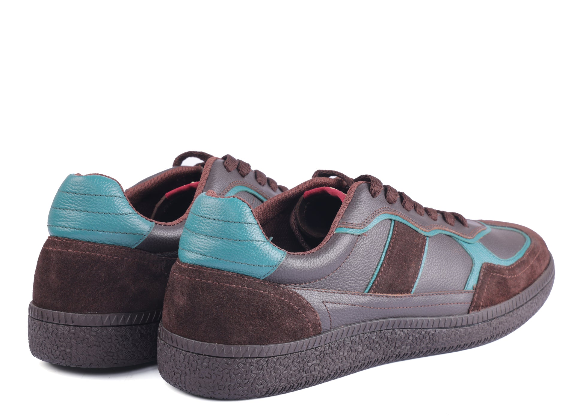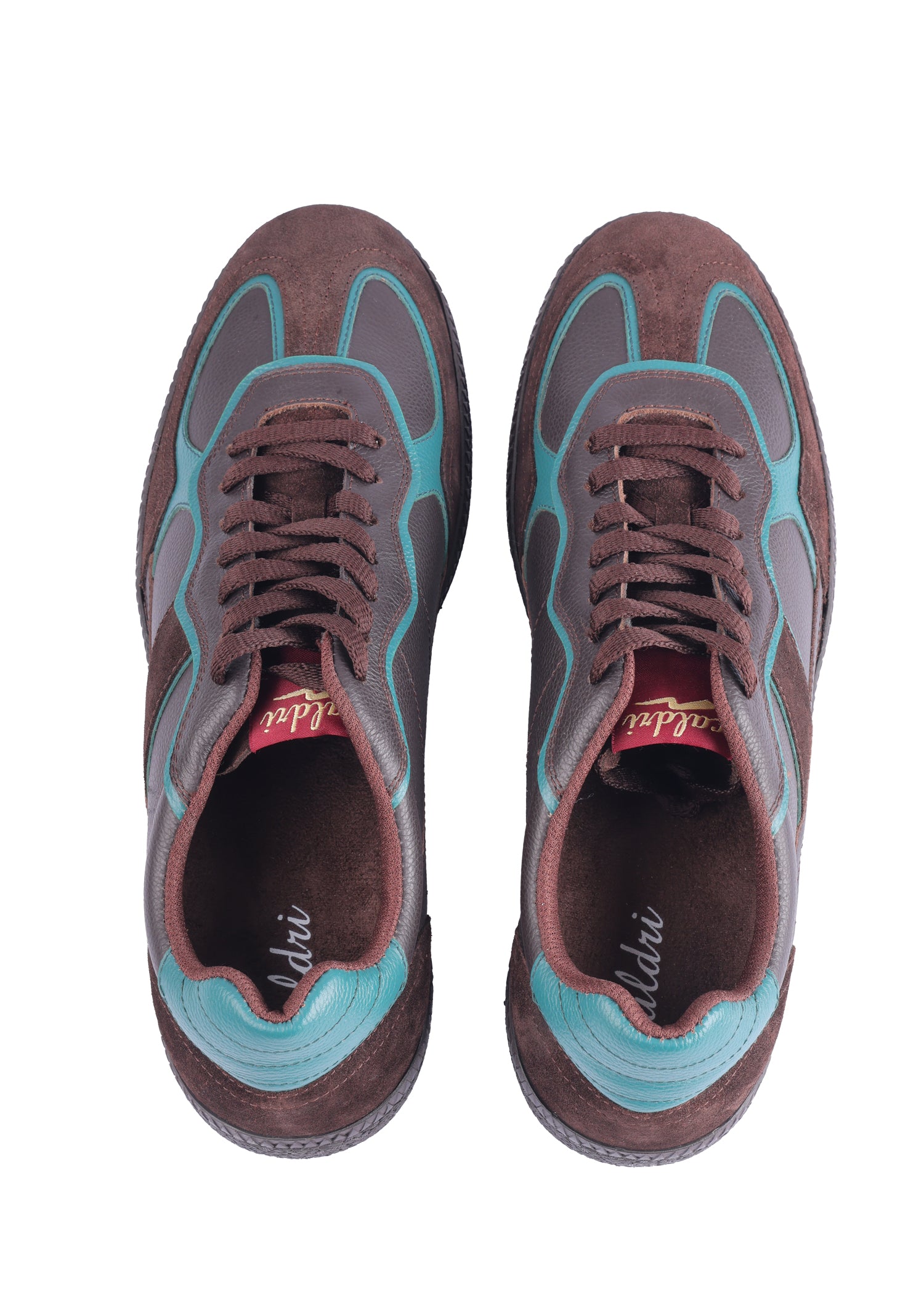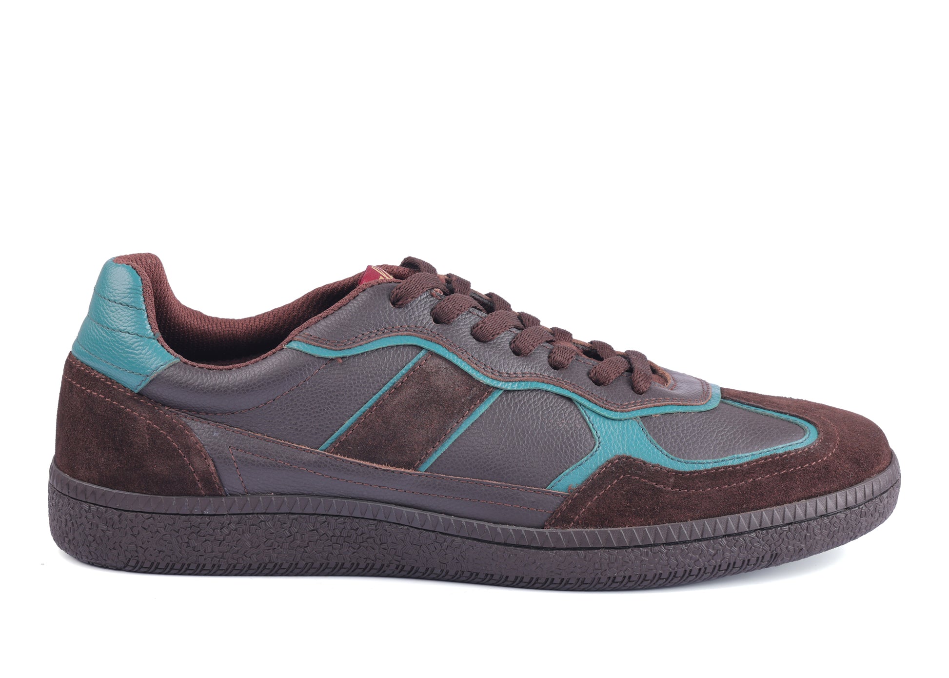 Elevate your casual style with the Caldri Leather Casuals in dark brown with teal accents. Crafted from premium leather, these shoes feature a breathable mesh lining and cushioned mesh sock for all-day comfort. Perfect for daily wear, they add a subtle pop of color to your routine look.