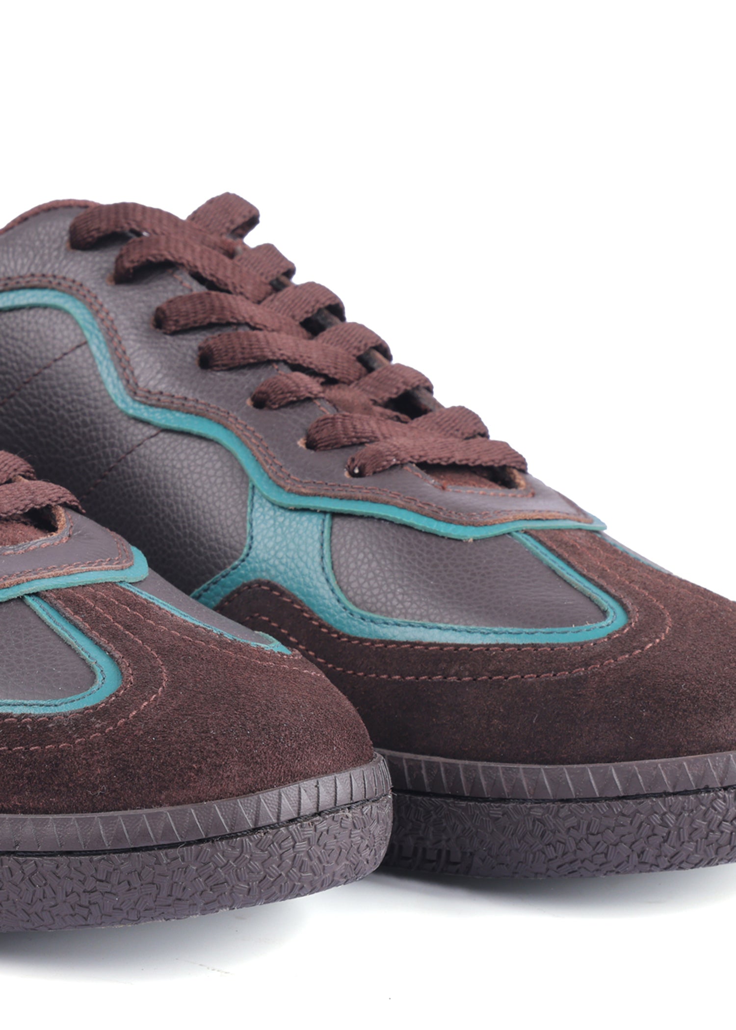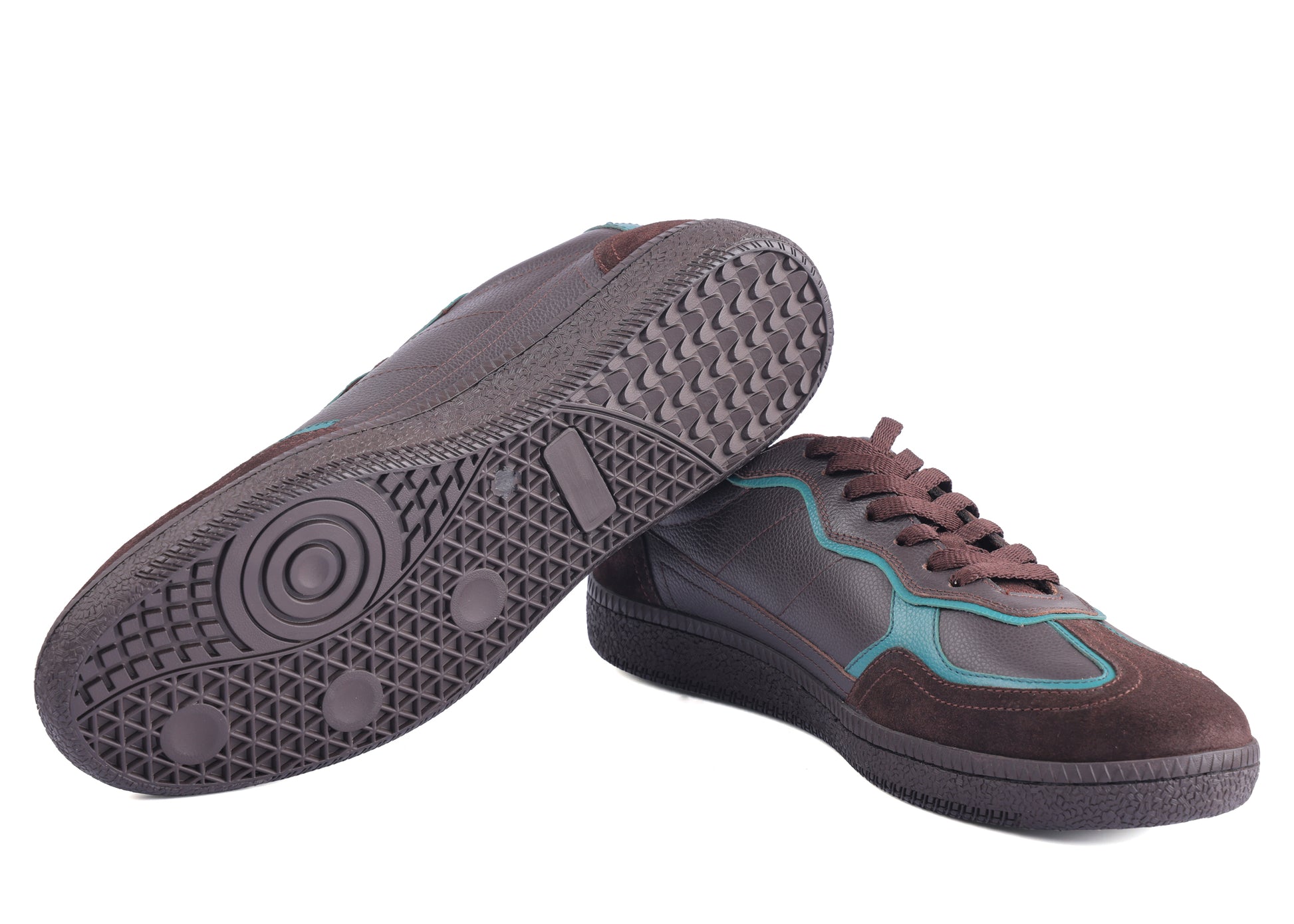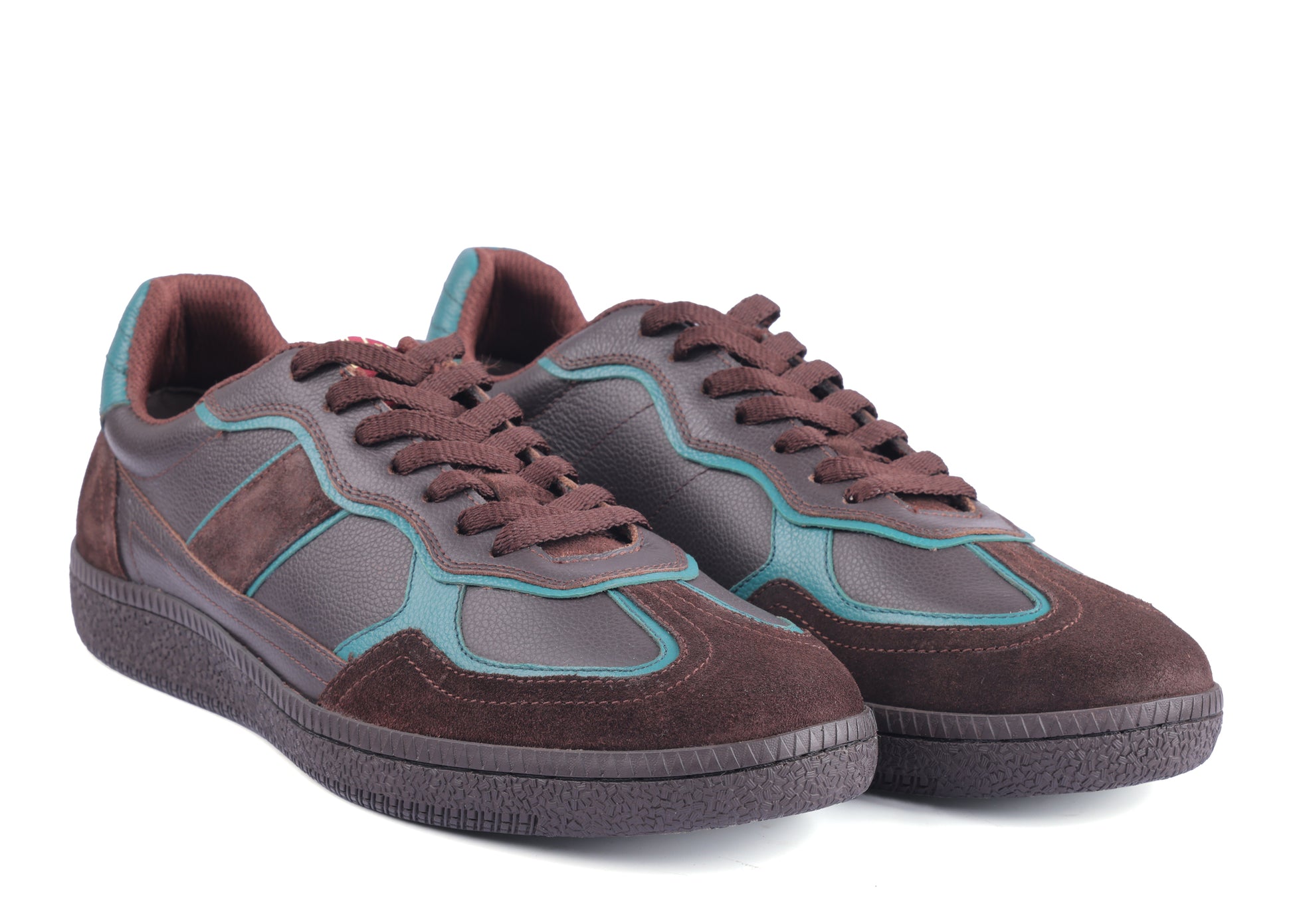 Elevate your casual style with the Caldri Leather Casuals in dark brown with teal accents. Crafted from premium leather, these shoes feature a breathable mesh lining and cushioned mesh sock for all-day comfort. Perfect for daily wear, they add a subtle pop of color to your routine look.